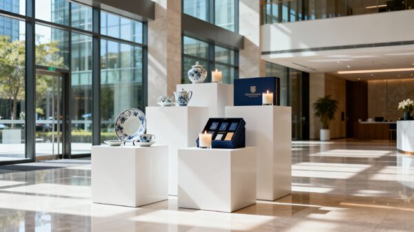 Размещение экспонатов подарков в витринах Клуба в бизнес-центрах