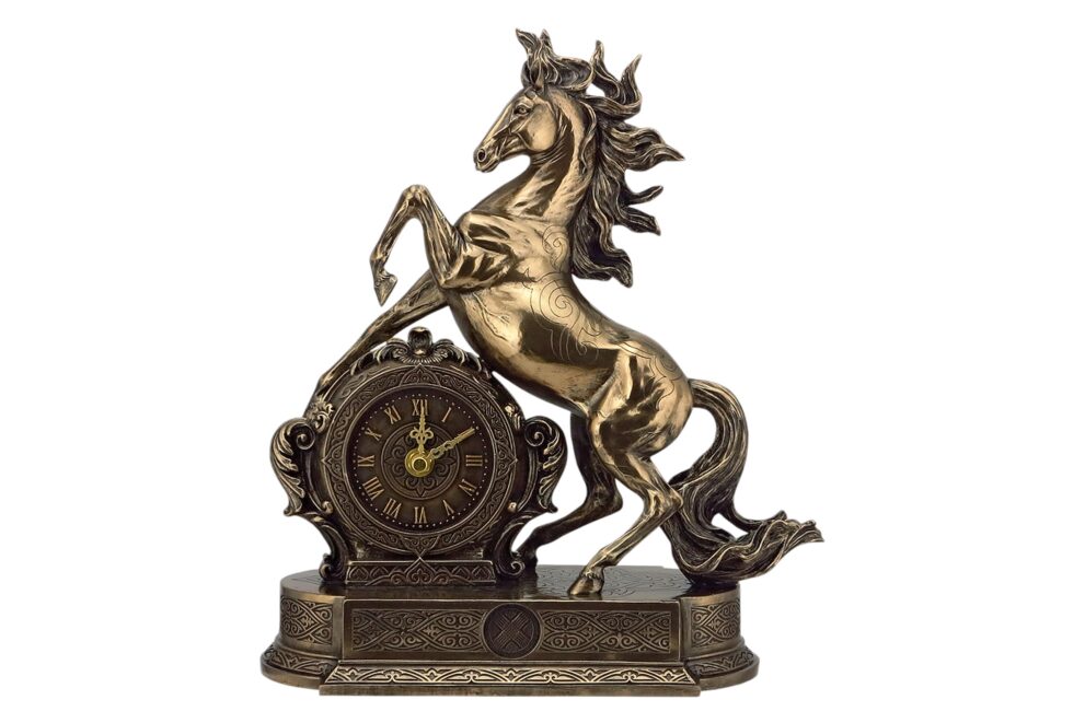 Настольные часы «Бронзовый конь» (бронзовая версия с золотом), полимер, размер 280*120*330мм, подарочная упаковка из картона. 280x120x330 мм.