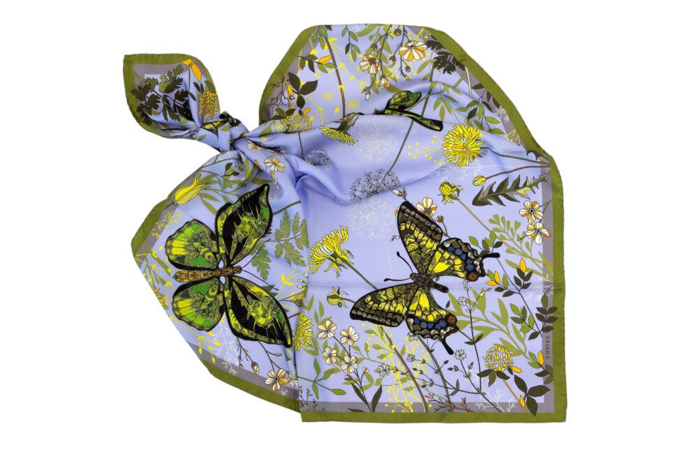 Платок из коллекции «Бабочки» цвет зеленый, 100% шелк подарочная коробка из картона. Размер 90х90 см.
