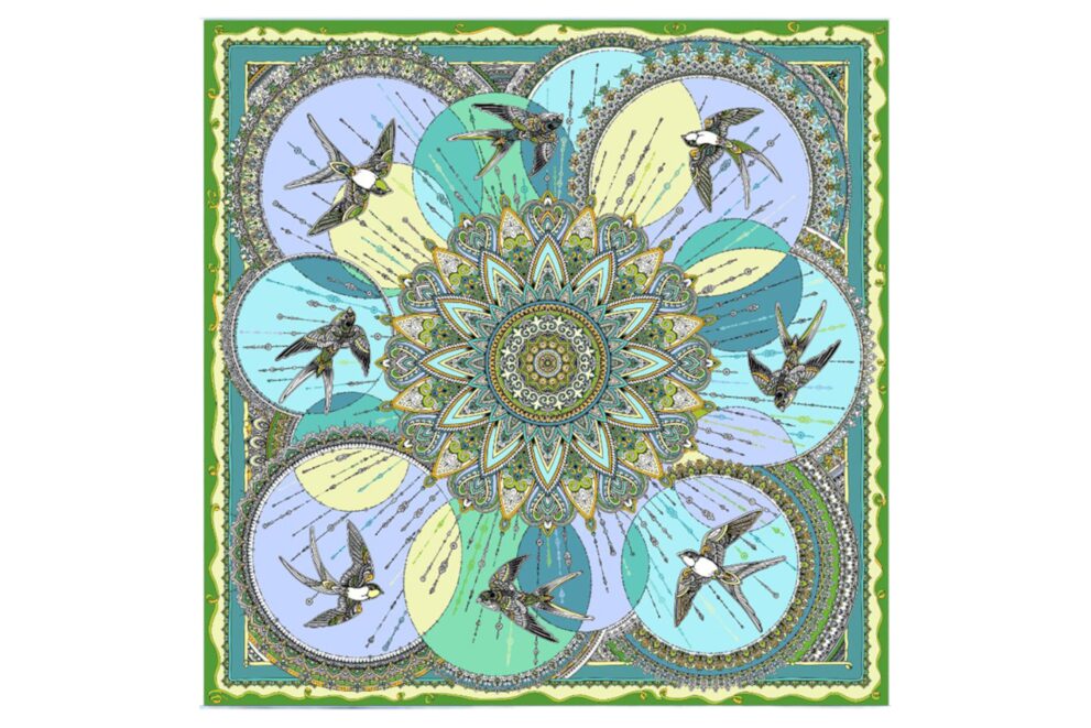 Платок Ласточка, цвет зеленый. Размер: 90х90см . Материал: 100% шелк
