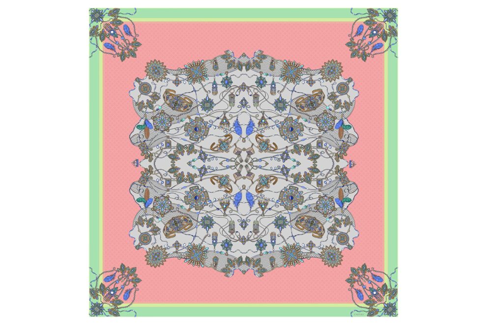 Платок «Украшение», размер 90х90см, цвет розовый, 100% шёлк, подарочная упаковка.