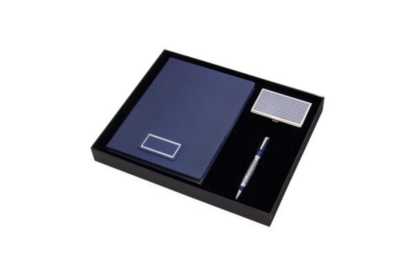 Подарочный набор «Орнаментальный » Визитница цвет черный, восточный орнамент, ручка — роллер цвет синий, восточный орнамент, записная книжка, кож зам, цвет голубой, серебряный обрез. Подарочная упаковка. 330х265х40 мм