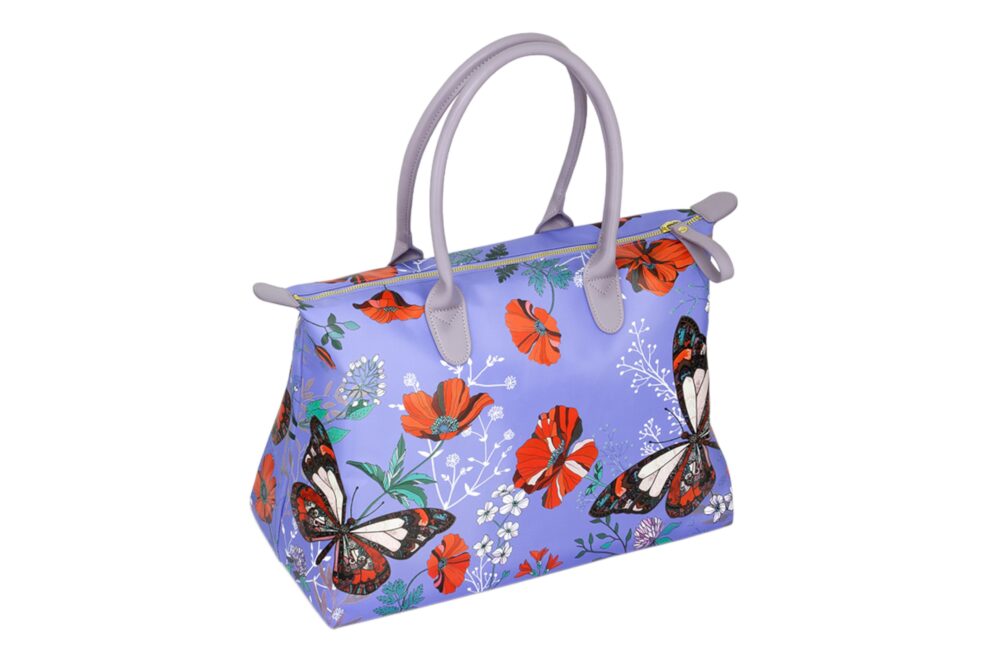 Сумка с изображением бабочек цвет фиолетовый, материал нейлон, ручки из PU, размер: 45х20х30см.