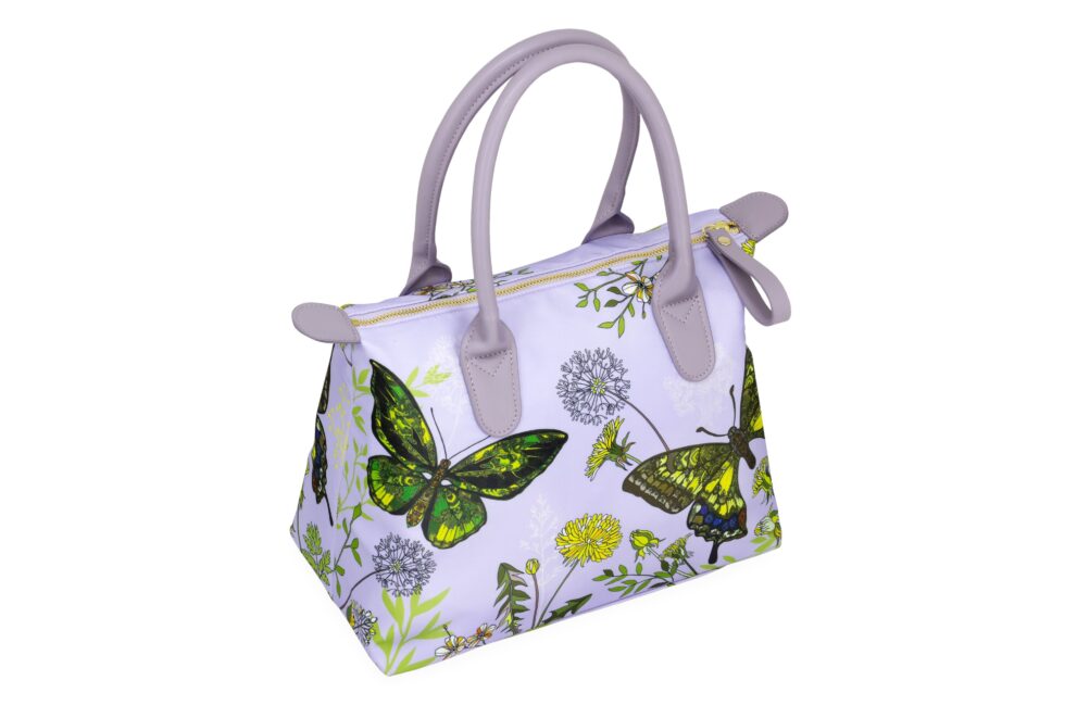 Сумка с изображением бабочек цвет зеленый, материал полиэстер, ручки из PU, размер: 45х20х30см.